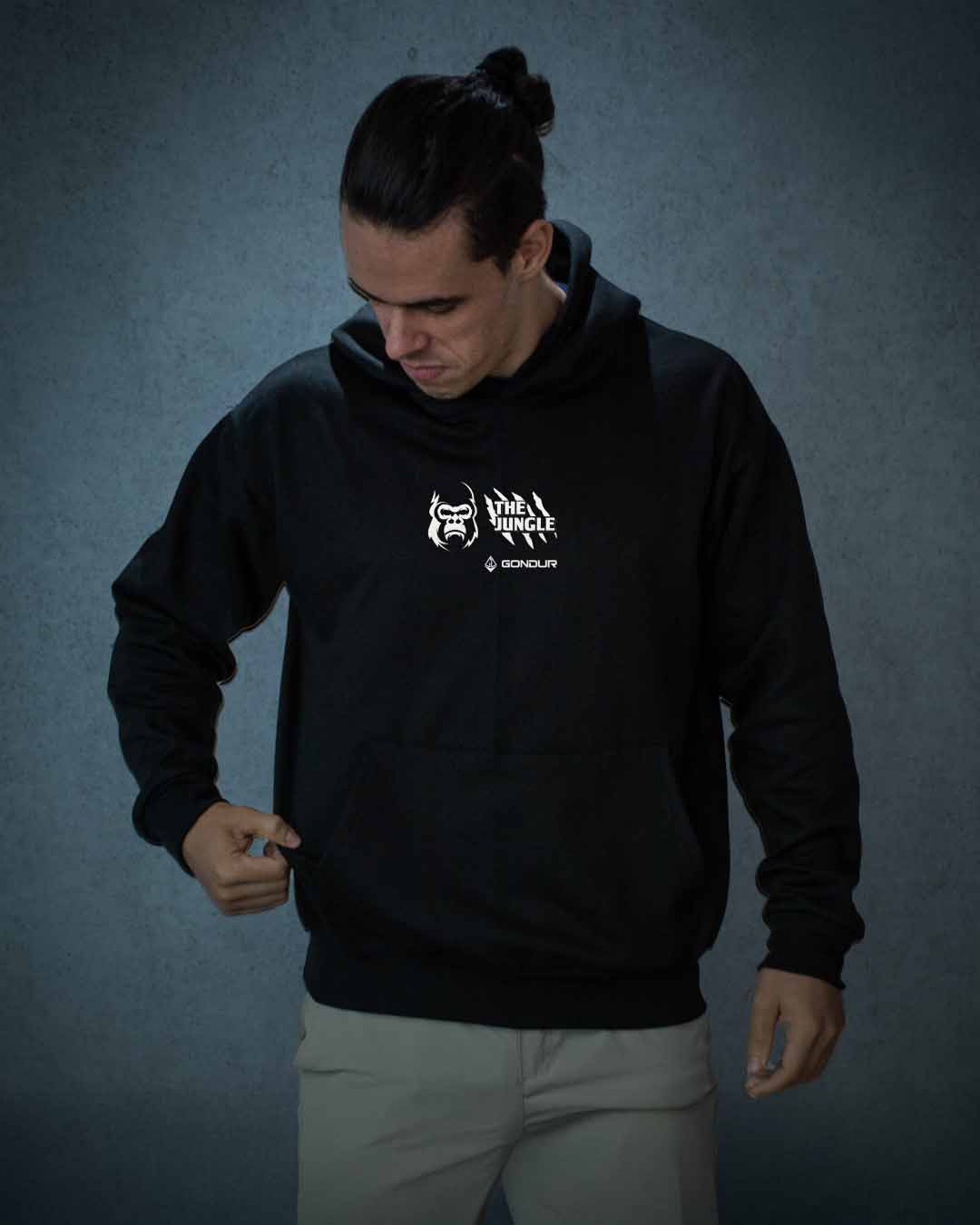 En la parte frontal encontrarás el logotipo clásico de The Jungle y nuestro aliado Gondur. En la parte trasera, una composición poderosa con el mensaje oficial de la temporada y los íconos de nuestros animales insignia. Ya sea para tus entrenamientos, tus pruebas de OCR, tu día a día o para presumir tu espíritu salvaje… esta sudadera es para ti.